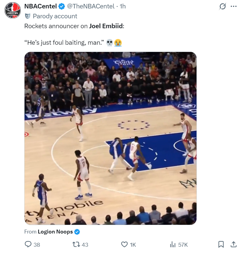 美媒也吐槽:火箭解说员说恩比德纯粹是故意碰瓷!